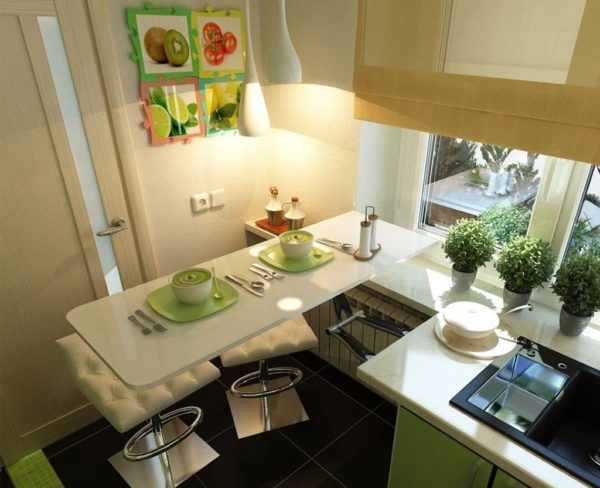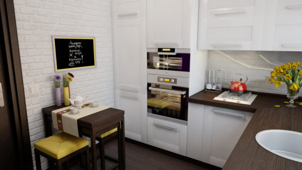 Ainsi, l'espace sous l'ensemble de cuisine et d'autres meubles est économisé, ce qui rendra la cuisine plus fonctionnelle et confortable.