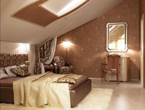 La chambre mansardée est une tendance à la mode, dont la création est associée non seulement à la capture de greniers dans des maisons anciennes, mais à de nouvelles maisons de campagne où un toit à une ou plusieurs pentes est utilisé.