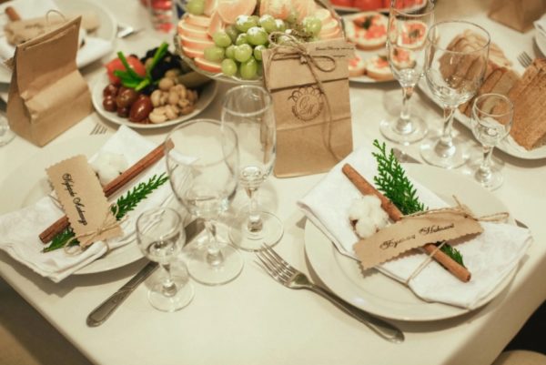 Il est de coutume de mettre des fleurs naturelles sur la table, et le premier bouquet apporté par les invités peut également être placé dans un vase pour la symétrie du maître. Le reste des bouquets ne doit pas encombrer l'espace: des vases sont préparés à l'avance pour eux, mais ils sont placés sur des surfaces visibles à l'œil nu - cela peut souligner le respect de l'offre et ne pas entraver la communication facile.