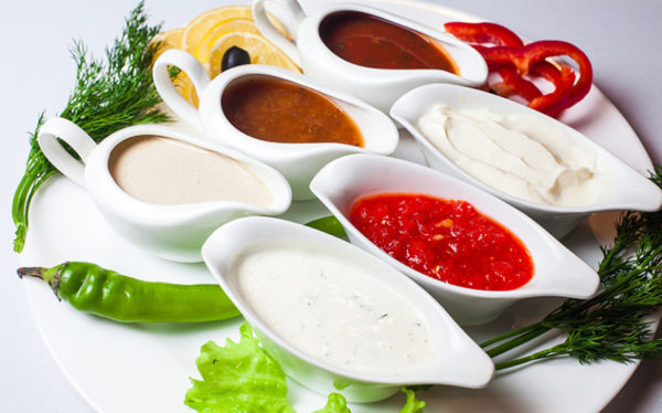 Il doit sûrement y avoir une correspondance d'épices et de délices servis - à la viande en gelée (et à la viande, aux apéritifs), à la moutarde et au raifort sont servis, du sel et du poivre doivent être requis, les sauces de magasin sont servies dans une saucière avec une cuillère, mais en aucun cas dans un sac et pas dans la banque. Le ketchup auto-préparé doit également être dans un récipient spécial et se tenir près du plat auquel il est destiné.