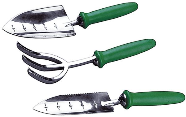 Un kit très pratique et miniature pour le jardin, qui comprend: un cône, une fourchette à pelle et un récipient à graines. Avec de tels outils, il sera facile de planter ou de transplanter des plantes.