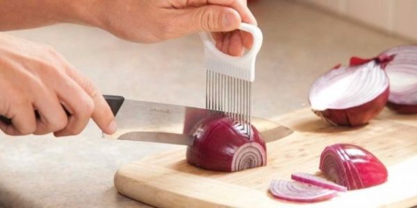 Si vous avez un tel appareil, vous perdrez certainement beaucoup moins de larmes lors de la coupe et obtiendrez des morceaux d'oignon soignés. Vous pouvez également couper de la viande, des pommes de terre, etc.Le prix est de 83 roubles.