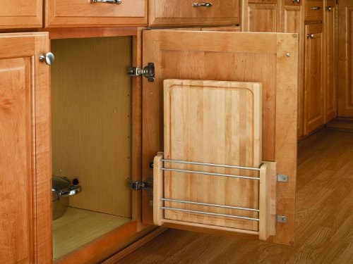 À l'intérieur des portes des armoires de cuisine, des filets ou des grilles peuvent être fixés. Ils peuvent stocker des planches à découper, de petits ustensiles ménagers, du papier d'aluminium, du film alimentaire ou d'autres petits articles qui sont souvent utilisés dans la cuisine.