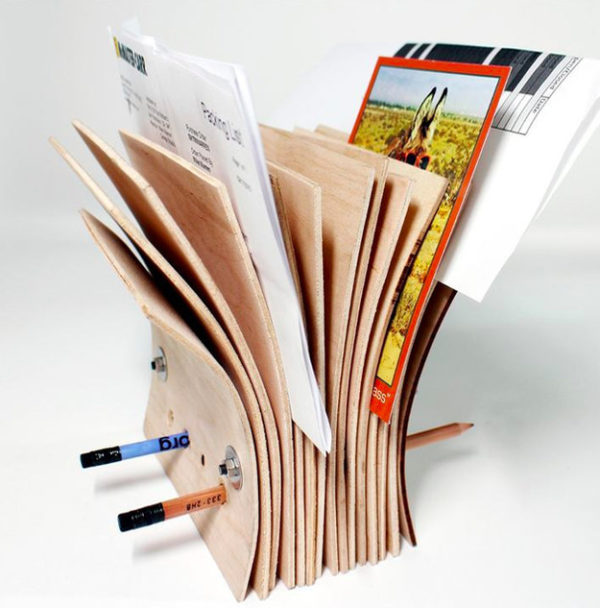 Dans sa fabrication, il est nécessaire de connecter plusieurs cartes. Après avoir atteint la hauteur requise, à l'aide de la scie sauteuse, les trous nécessaires pour stocker la papeterie sont découpés.