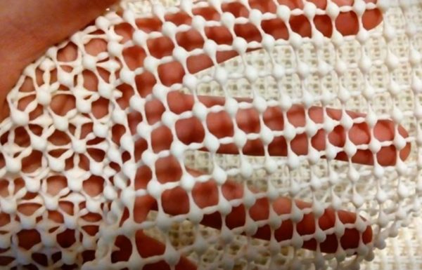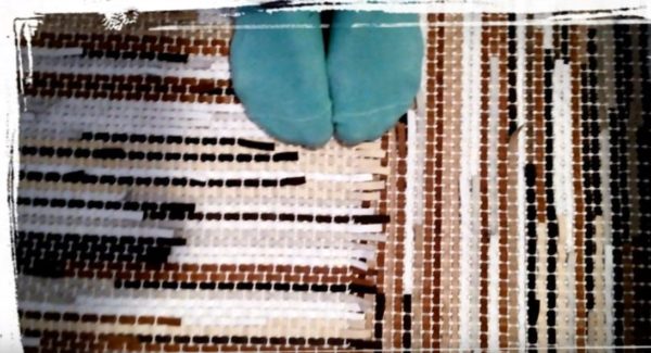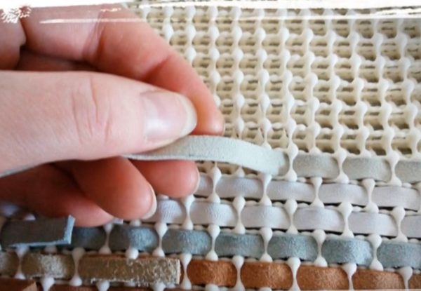 Une toile ou tout maillage fera l'affaire. La peau doit être coupée en bandes et tissée dans la toile. Vous pouvez utiliser la peau d'une ou de plusieurs couleurs.