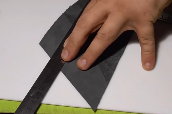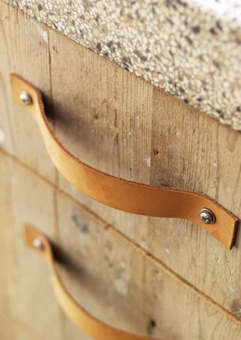 Pour créer de telles poignées inhabituelles pour les tiroirs et les portes de meubles, vous devez utiliser du cuir dense et plutôt épais, dont la largeur est d'au moins 2-3 mm. Coupez des bandes de n'importe quelle largeur et longueur souhaitée. Il est préférable de couper avec un couteau sur une surface spéciale solide et uniforme dans une règle.