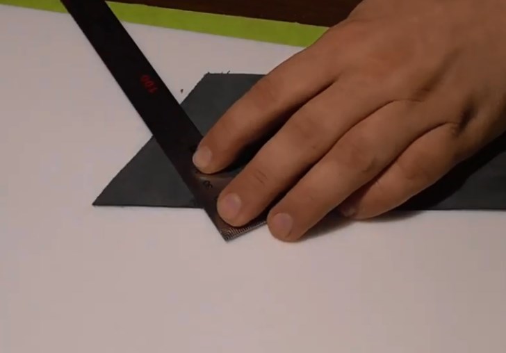 - Découpez un rectangle pour fixer la poignée à la partie principale, autour des bords. À l'aide d'un cordon en cuir, attachez-le à un côté de la partie principale, posez la poignée et fixez-le en travers de l'autre côté de la partie principale.