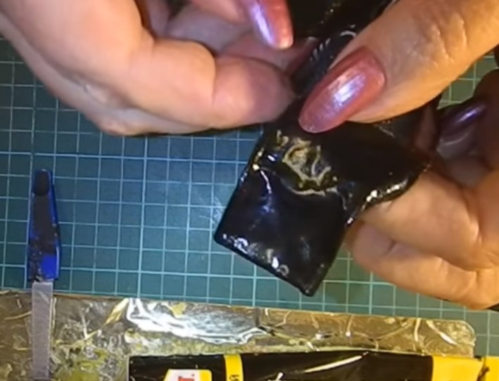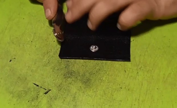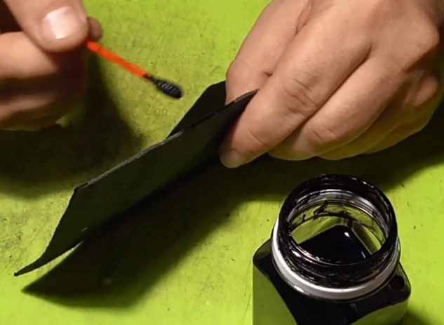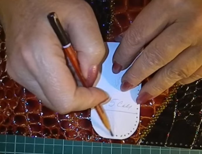 - Coupez une fine bande pour le manche du pot de quelques centimètres de large et 20-25 cm de long, fermez-la en cercle et fixez-la avec un chiffon avec des rivets. Ce sera un stylo.