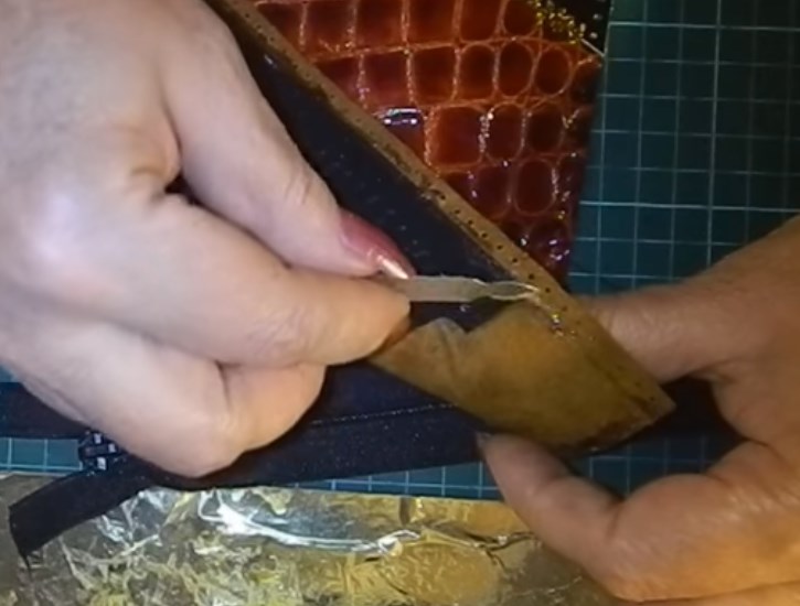 Il est préférable de fixer le cuir aux meubles sur des vis autotaraudeuses. Les bords des bandes peuvent être coupés uniformément, en diagonale ou avec un drapeau.