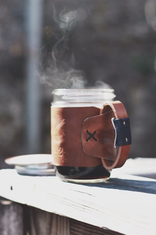 Le porte-gobelet est prêt. Vous devez le mettre sur un pot. S'il est fait exactement en taille, il ne sautera pas. Pour plus de fiabilité, vous pouvez fixer le pot avec un couvercle avec une colle spéciale adaptée au verre et au cuir.