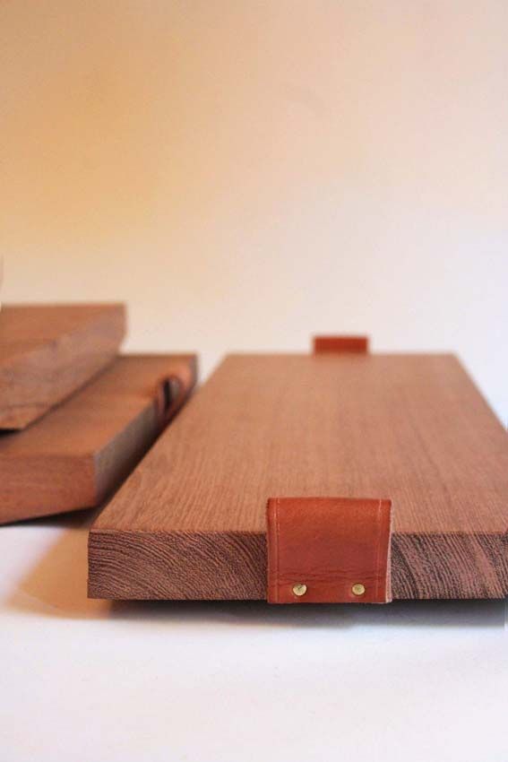Vous pouvez faire un beau plateau en bois avec des poignées en cuir. Pour ce faire, les bandes de cuir sont fixées de l'extrémité du plateau aux rivets. Il peut y avoir plusieurs options pour l'emplacement de montage.