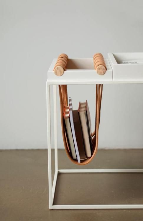 À l'aide de blocs en bois et de bandes de cuir, vous pouvez créer des étagères suspendues élégantes pour des magazines.