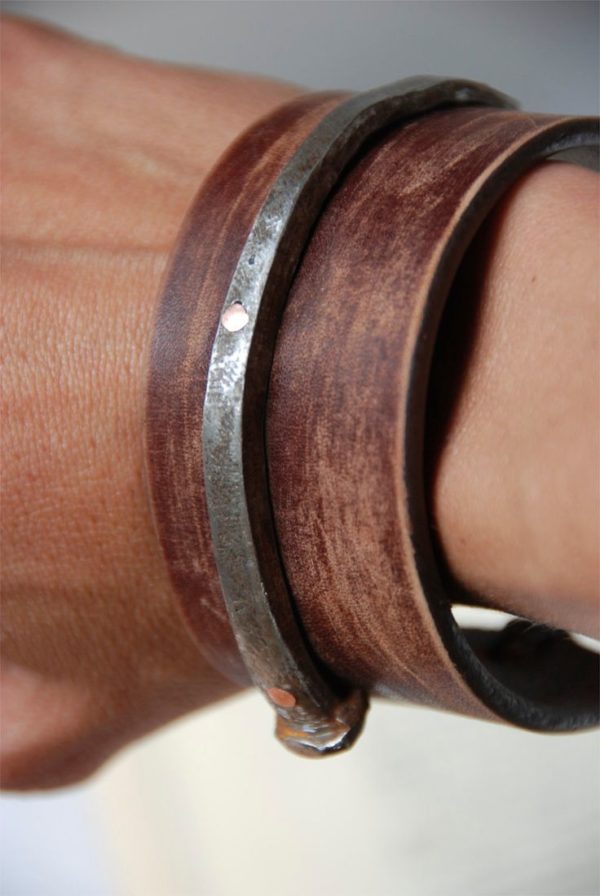 Les restes de cuir, fermés dans des anneaux de différents diamètres, peuvent être adaptés pour stocker des bouteilles.