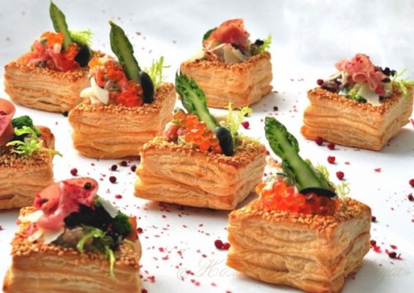 Les petites tartes cuites à partir de pâte feuilletée ou de levure avec diverses garnitures seront très savoureuses.