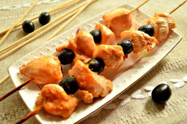 L'une des idées spectaculaires et savoureuses à la table du buffet ou tout simplement pour les réunions à domicile sera la salade César en brochettes. Il faut préparer des croûtons, faire de la vinaigrette. Hachez ensuite les ingrédients, placez-les sur des brochettes.