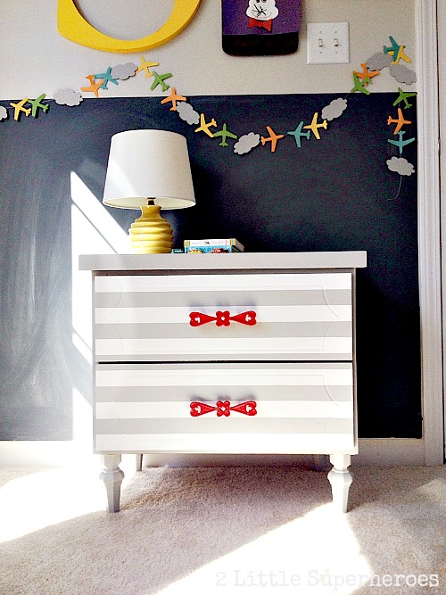 Lorsque vous choisissez des étiquettes, vous pouvez opter pour les noms de rue ou les noms de vos villes préférées. Vous pouvez placer vos noms préférés sur la commode. Tout dépend de ce que vous voulez voir dans votre chambre.