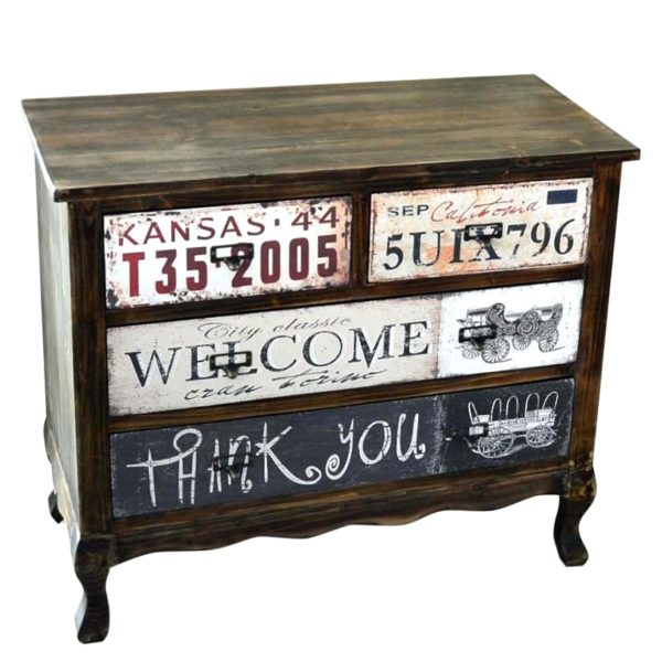 - Une vieille commode aura fière allure, lors de la restauration de laquelle des dates ou des mots seront appliqués sur la surface.