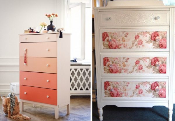 Lors de la restauration d'une commode, vous pouvez choisir n'importe quelle option qui vous convient. Plus le travail est simple, mieux c'est - vous n'aurez pas à consacrer beaucoup de temps à ce processus et à investir de l'argent.