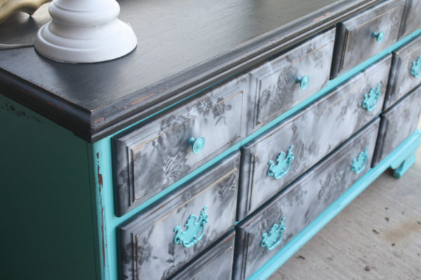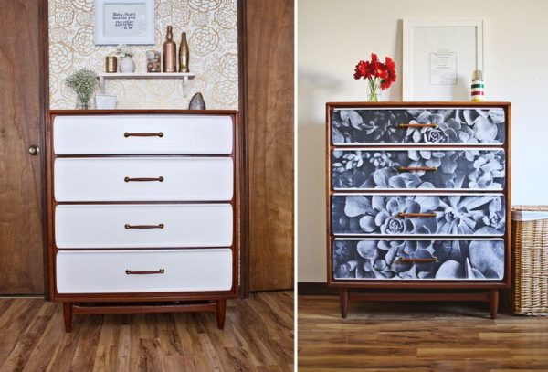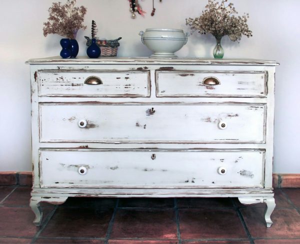 - Si la commode est ancienne, dans ce cas, vous pouvez ajouter un imprimé floral.