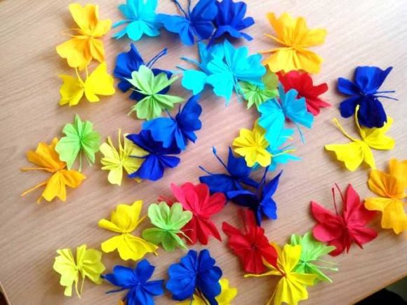 Il existe plusieurs façons de fabriquer un papillon en papier. Selon la taille, la complexité et le savoir-faire, ils diffèrent par la quantité de matériaux utilisés, le temps et les efforts. Les insectes en papier ailés peuvent faire partie de la composition globale ou agir comme décoration indépendante. La légèreté et la délicatesse des ailes de papillon les rendent adaptées à de nombreux intérieurs.