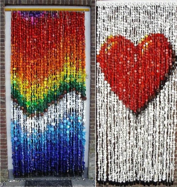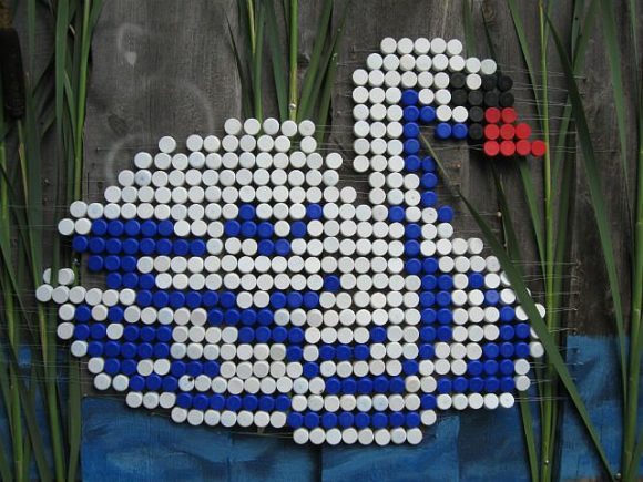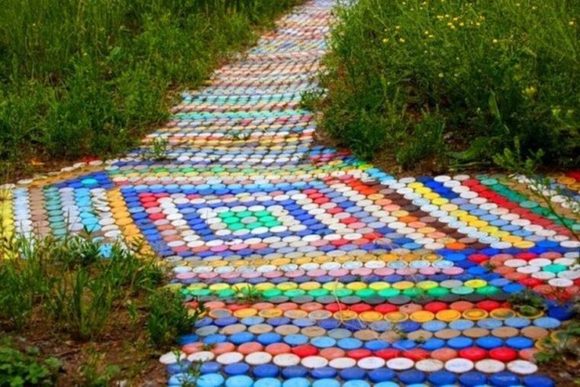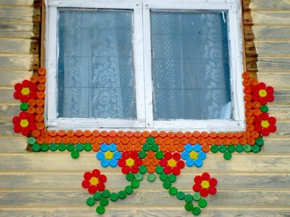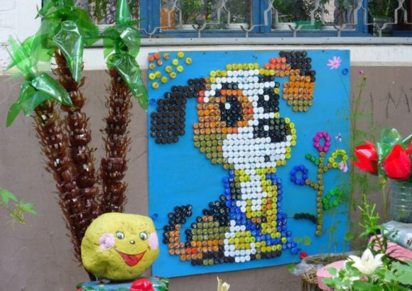 L'artisanat à partir de bouchons multicolores à partir de bouteilles en plastique peut décorer un jardin, une cour de campagne, un potager. L'intérieur deviendra plus coloré et créatif.