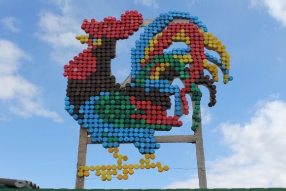 Pour ce genre d'art, ils prenaient généralement des perles de verre, de petits carreaux de céramique et de la pierre. Maintenant, il existe une nouvelle façon de décorer les murs des maisons de campagne, les clôtures, les chemins. Diffusez des images entières, de beaux motifs, des ornements à partir de bouchons en plastique.