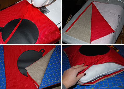 - Ensuite, cousez une taie d'oreiller ordinaire. Utilisation de tissu avant avec applique.