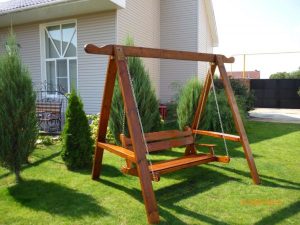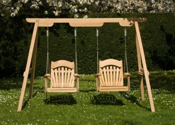 - Eh bien, et le troisième - directement la balançoire pour enfants. La forme préférée d'une balançoire pour les enfants est les bateaux ou les fauteuils suspendus.