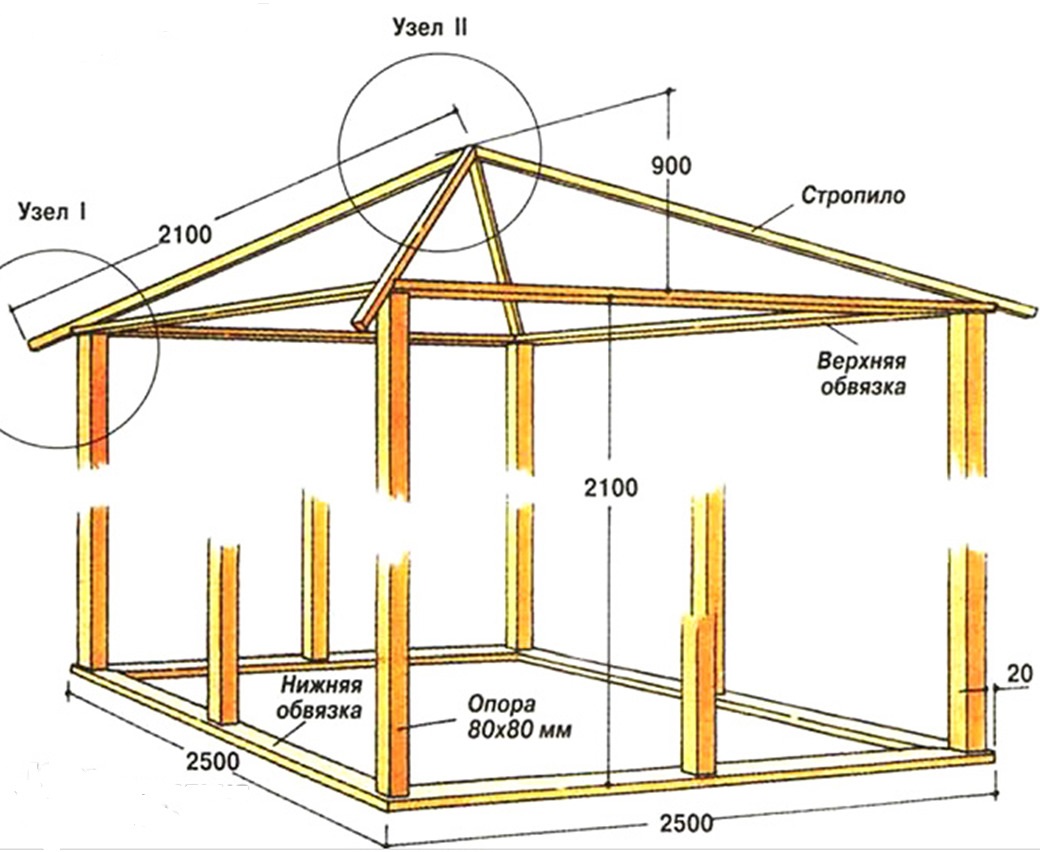 Avant de construire un gazebo, vous devez choisir un emplacement. Si la maison de jardin est destinée à un espace ouvert, la pente du toit doit être inférieure. Pour une zone enterrée, la pente est mieux augmentée.