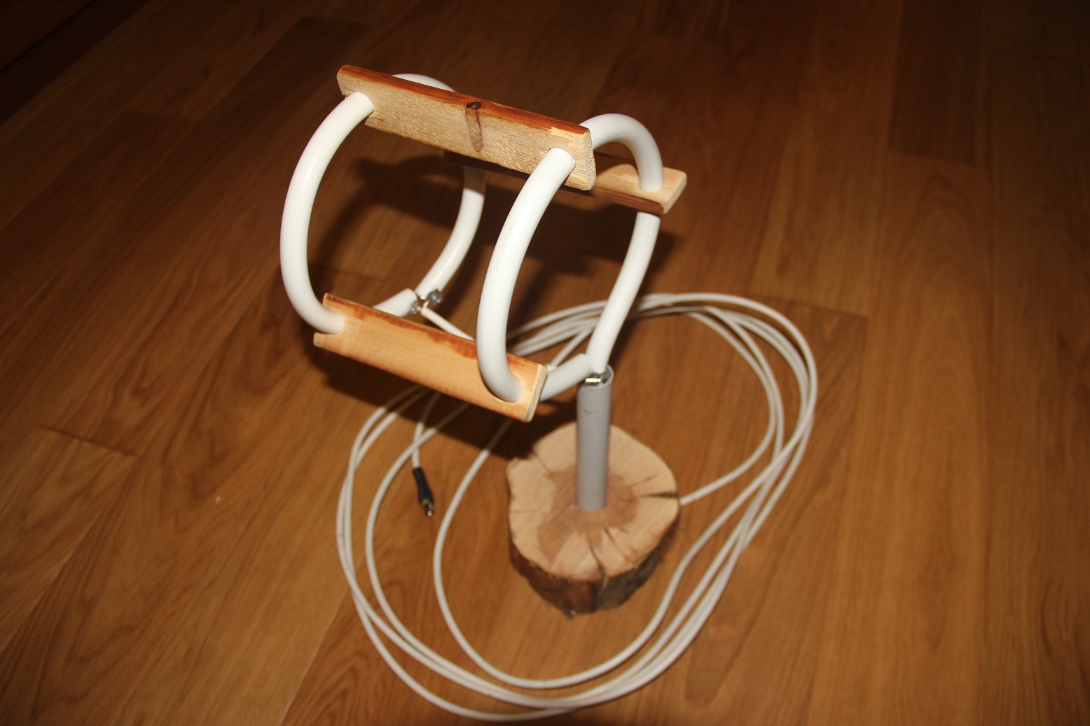 La partie biquade de l'antenne fixée à l'intersection de deux figures est fixée sur un rail en bois. Un câble est connecté à ce point, il est tiré vers un téléviseur ou un autre appareil. Sur la face arrière, un réflecteur est fixé au rail - des tiges métalliques transversales qui améliorent le signal entrant. Le câble coaxial est pressé contre le côté du carré, selon le côté à partir duquel il est connecté. Serré avec du ruban électrique pour la fixation et la conductivité.