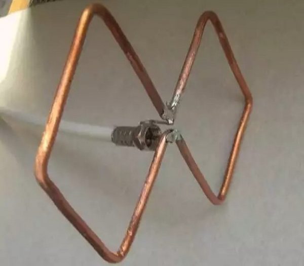 L'antenne est une double construction de carrés reliés par soudure. Un câble est connecté au même endroit. Encore une fois, si vous le souhaitez, l'installation d'un réflecteur est possible. Il convient de considérer la distance entre le récepteur et le réflecteur, afin que l'appareil fonctionne en conséquence. Vous pouvez utiliser un objet de l'échelle requise pour séparer le réflecteur et la double structure. Après avoir pris des mesures et assemblé les pièces, elles sont fixées avec un adhésif thermofusible.