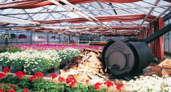 Le bois de chauffage est un moyen abordable de chauffer une serre après le gaz. Un poêle en brique ou en métal, une chaudière à combustible solide peut chauffer à la fois une petite et une zone importante. Le bois est sans danger pour l'homme, a une efficacité élevée lors de la combustion dans un four. La chaudière est installée au centre de la serre, un tuyau de cheminée est amené à l'étage. Les granulés et les briquettes de bois sont utilisés comme combustible pour les poêles. L'équipement du poêle est capable d'accumuler de l'énergie à l'intérieur pendant longtemps.
