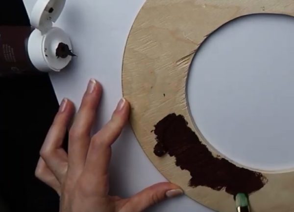 - Prenez un morceau de carton épais, qui en forme ressemble à une future couronne. Peignez-le en brun mat des deux côtés.
