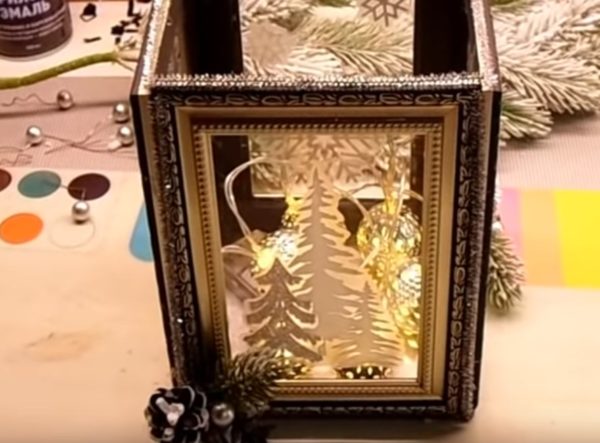La lanterne peut être considérée comme prête. A l'intérieur, vous pouvez mettre une bougie réelle ou fausse, mettre une guirlande.