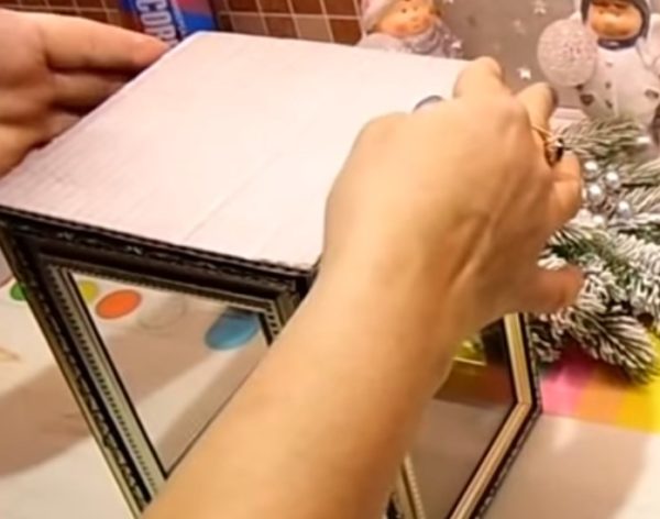 - Collez les cadres les uns aux autres. Après cela, utilisez le pistolet à colle pour fixer la base. Excédent de carton coupé.