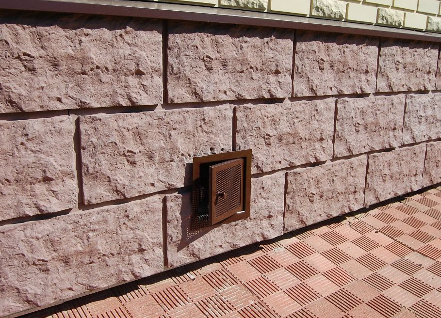 Lors de l'installation de feuilles professionnelles, n'oubliez pas de couper les trous de ventilation aux bons endroits. Toutes les ouvertures sont fermées avec des grilles en plastique après le revêtement complet de la fondation. Les treillis sont fixés avec des chevilles à la structure du cadre.