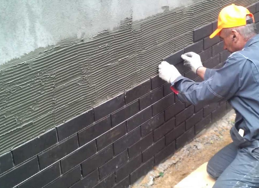 Pour les travaux de finition, utilisez le plus souvent des dalles de béton avec une texture décorative à l'extérieur. Pour augmenter la résistance de la pierre artificielle, des composés résistants à l'humidité sont utilisés. Afin de préserver la décoration de la couche extérieure, celle-ci peut en outre être peinte. Fixez le matériau à la colle, mais seulement après que la fondation a été apprêtée. Le revêtement artificiel est universel: il convient à toutes les façades.