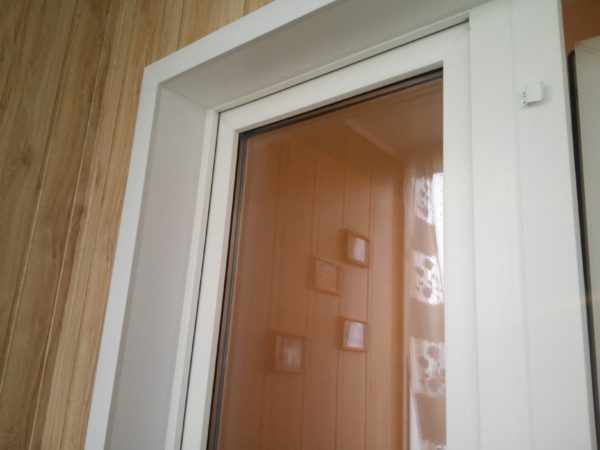 - Sur le côté du plastique adjacent à la fenêtre, nous mettons le «Elka», puis nous le tirons sur les côtés, la finition touche le bout à bout. Ce n'est que maintenant que nous mesurons la largeur de la bande de parement et coupons l'excédent.