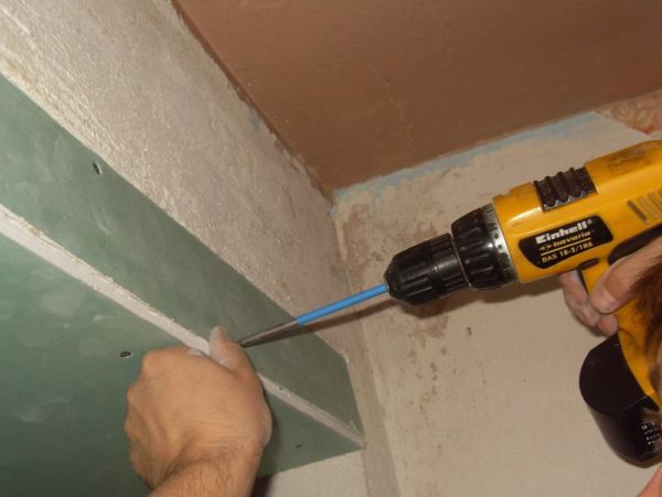 - Nous insérons des cloisons sèches dans le profilé métallique et le fixons avec des vis.