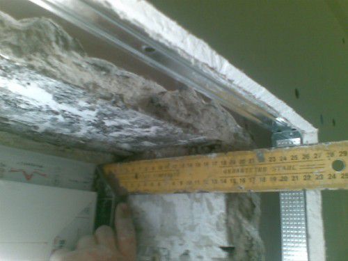 - Nous mesurons la longueur des larges bandes horizontales supérieures de métal. Nous mesurons de l'intérieur du profilé de guidage.