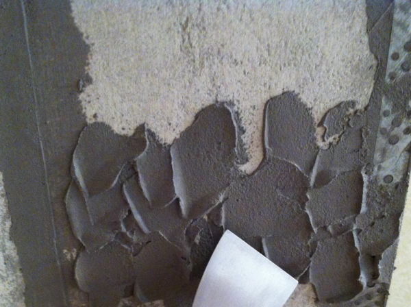 - Nous enlevons l'ancien excès et la couche de plâtre qui s'effrite.
