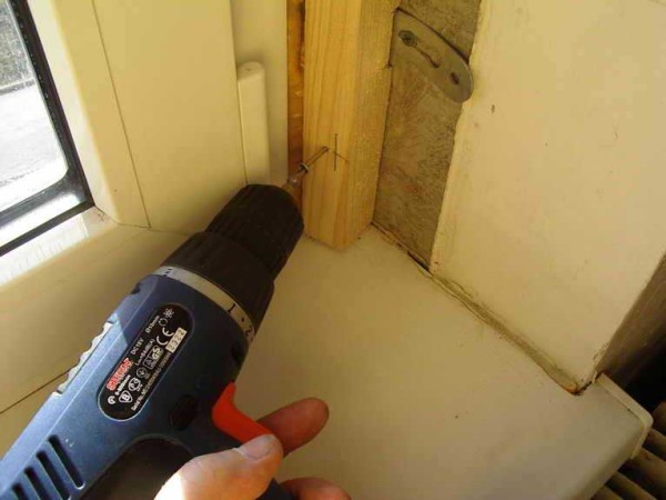 - Sur les trois murs près de la fenêtre, nous faisons plusieurs trous avec un poinçon. Nous y enfonçons les chevilles et visons les vis de sorte que les chapeaux soient alignés le long de la ligne du phare.