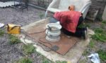 En face de la porte, faites une cheminée. Pour ce faire, marquez le trou dans la partie supérieure de la partie médiane en fonction de la taille du tuyau et découpez-le avec une soudure électrique. Le coude fini est inséré dans le trou, dirigeant le tuyau vers le haut. Il doit être inséré au ras de la partie principale. L'articulation est échaudée en cercle. Ensuite, toutes les coutures et sections sont nettoyées avec un broyeur.