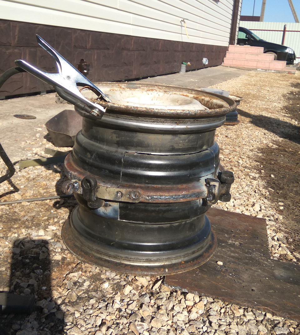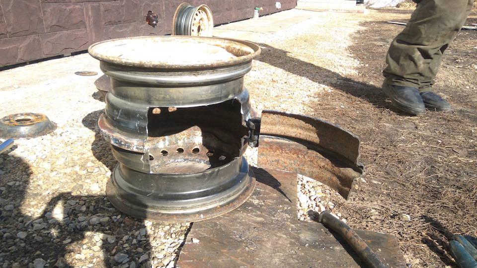 Pour commencer, les roues sont préparées pour le soudage. La face avant est complètement coupée de l'une des parties pour donner accès à la chaleur à la zone où les aliments seront cuits et pour aider à leur distribution uniforme. Avec la deuxième partie, ils font de même. Le troisième disque reste inchangé. Afin de ne pas se tromper, il est préférable de marquer la séquence de disques avec un marqueur ou une craie.