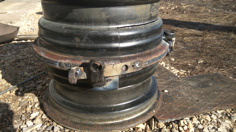 Le disque inférieur est placé sur une surface plane face vers le bas. Sur elle, définissez la partie centrale. L'intérieur du disque doit être orienté vers le bas. Soudé en quatre endroits. Installez ensuite la partie supérieure, en la retournant face vers le bas. Encore soudé à quatre endroits. Vérifiez à nouveau l'exactitude de l'assemblage, afin que les pièces soient placées strictement verticalement et commencez à ébouillanter la structure.