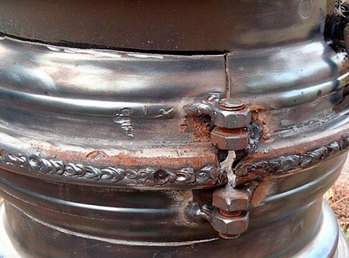 Pour que les pièces ne se déforment pas, le soudage est effectué pas à pas. Après avoir fait bouillir une section séparée, la pièce est tournée de 90 degrés et un petit segment y est brassé, puis il est à nouveau déployé. Progressivement, soudez les deux coutures.