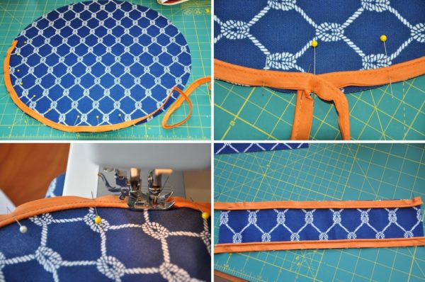 - Ensuite, vous devez fixer la poignée sur le côté du pouf, en la cousant le long des bords en travers.
