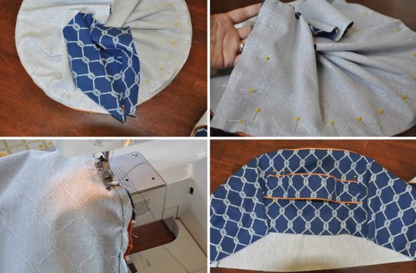 - Cousez les parties supérieure et inférieure sur le côté, en balayant d'abord, puis en cousant sur la machine. Il est nécessaire de laisser quelques centimètres afin de remplir le produit d'hivernant synthétique.