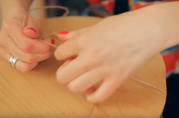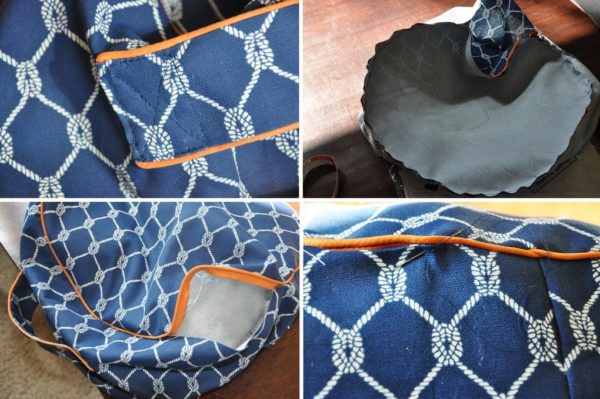 - Cousez la housse, insérez la tresse le long de la couture inférieure et placez la housse sur le pouf. Serrez la tresse.