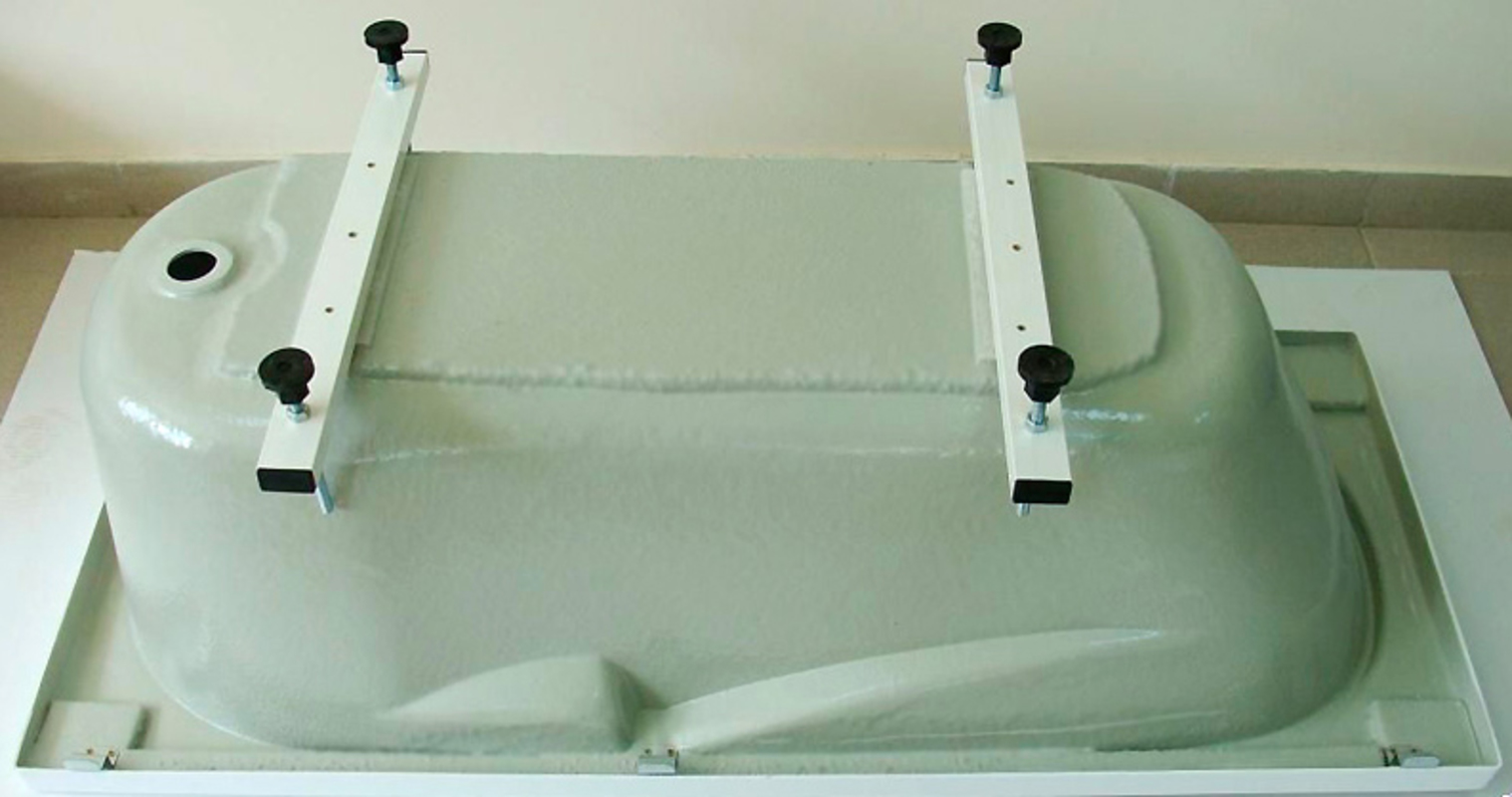 Le cadre métallique est un cadre. Aussi pour l'installation, vous aurez besoin de goujons, supports, pieds et écrous. L'installation par vous-même d'une baignoire en acrylique sur le cadre comprend les étapes suivantes: